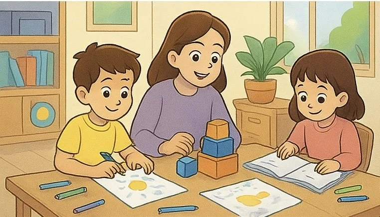 Learning-focused activities, creative play, and social skill-building all in a comfortable home setting.